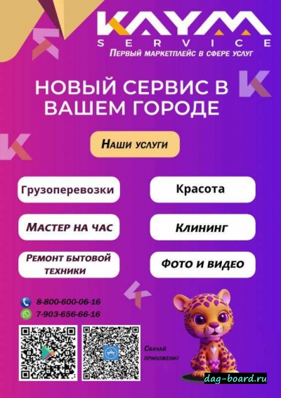 KAYM-Сервис – это удобный и надежный способ найти проверенного специалиста для решения любых бытовых вопросов! Наши услуги: • Профессиональная уборка – генеральная, после ремонта, офисная. • Вывоз мусора – избавим вас от хлама быстро и без хлопот. • Грузчики и грузоперевозки – бережная транспортировка и такелажные работы. • Мастер на час – мелкий ремонт, установка мебели, электромонтаж, сантехнические работы. • Ремонт бытовой техники – починим технику прямо у вас дома. Почему выбирают нас? • Фиксированные цены – никаких неожиданных доплат! • Безопасность и надежность – у нас работают только проверенные и опытные мастера. • Срочный выезд – специалисты готовы приехать с инструментами в кратчайшие сроки. • Экономия времени и сил – вам не нужно искать мастера, мы подберем лучшего! KAYM-Сервис создан для удобства и комфорта наших клиентов. Наши специалисты помогут вам в любой ситуации: от ремонта мебели до подключения бытовой техники.
